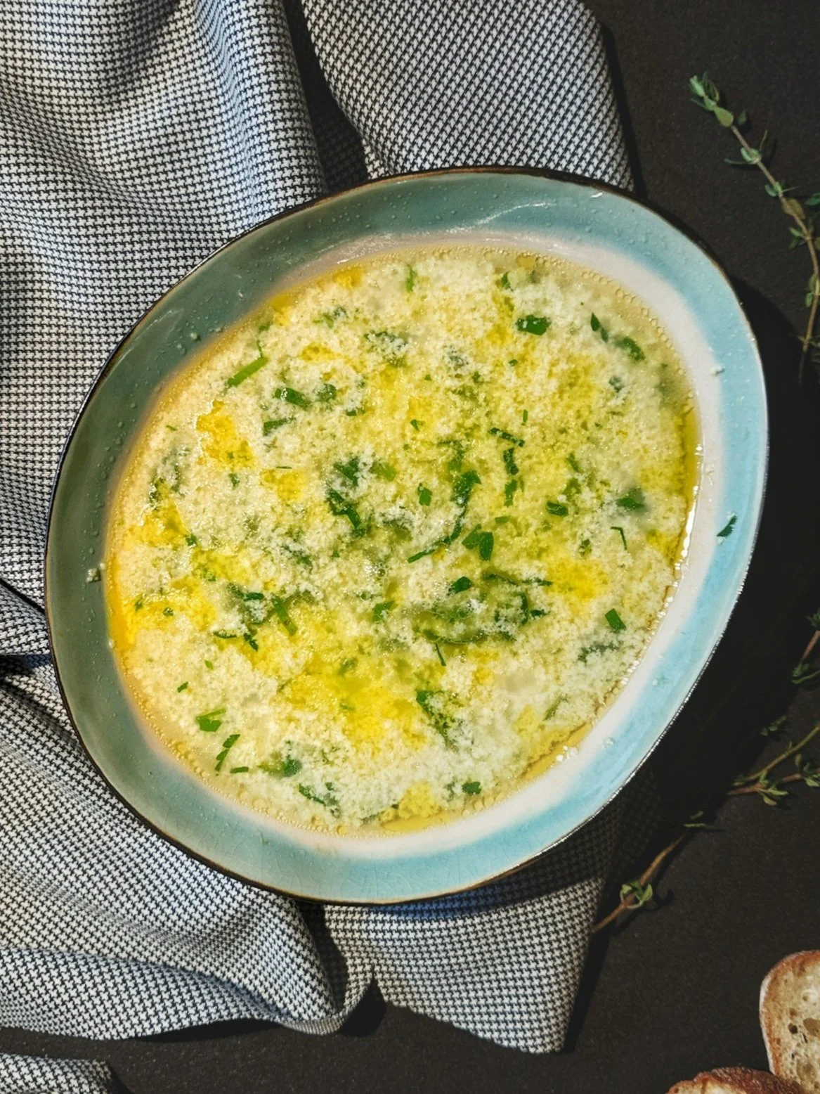 Garnish with parsley and the juice of a fresh lemon wedge (optional).