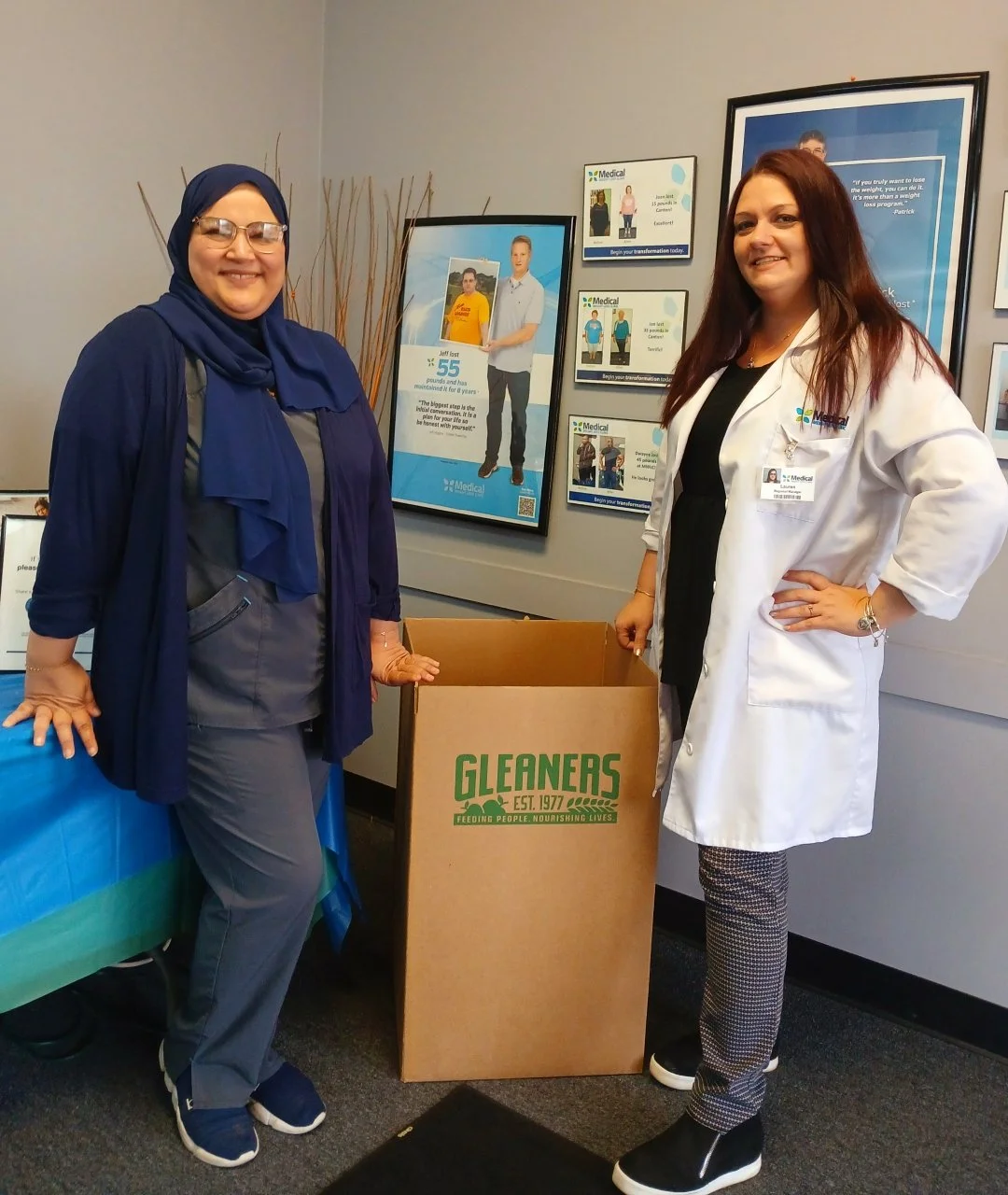 The generosity of our patients and staff - like Dahlia and Lauren at our Canton location - has helped Medical Weight Loss Clinic contribute more than 2,000 pounds of donated food to Gleaners Community Food Bank of Southeast Michigan over the past year. Keep those food donations coming.